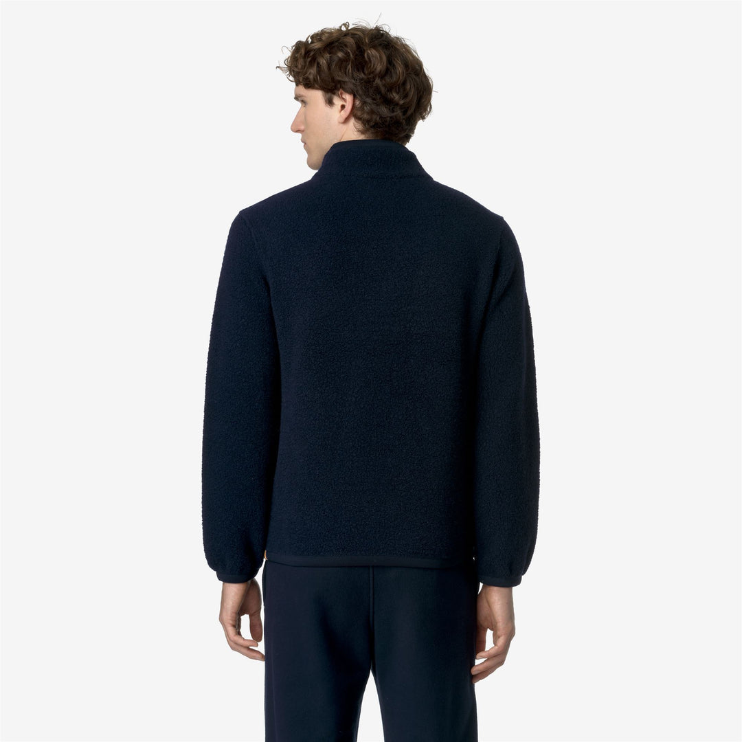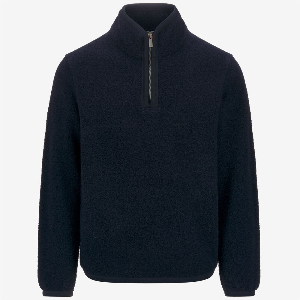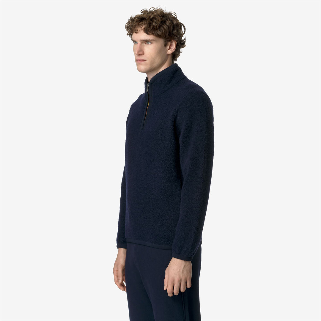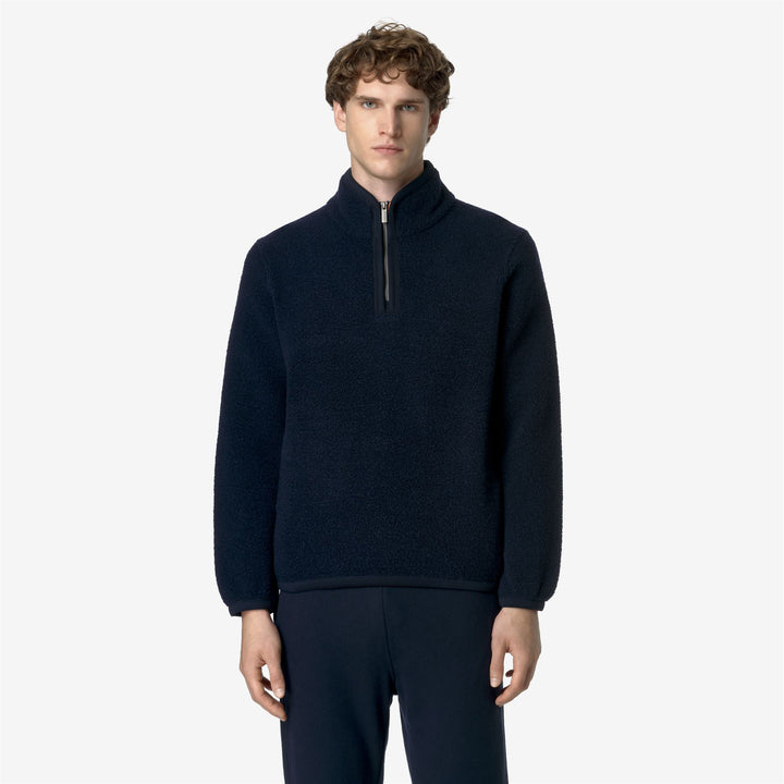 Ern is a men's sweater with a soft and cozy look which is ideal for leisure occasions, made from a blend of recycled wool teddy fabric. This essential style has a regular fit with elastic cuffs, high collar with half-zip closure, and the iconic K-Way tape detail on the side.