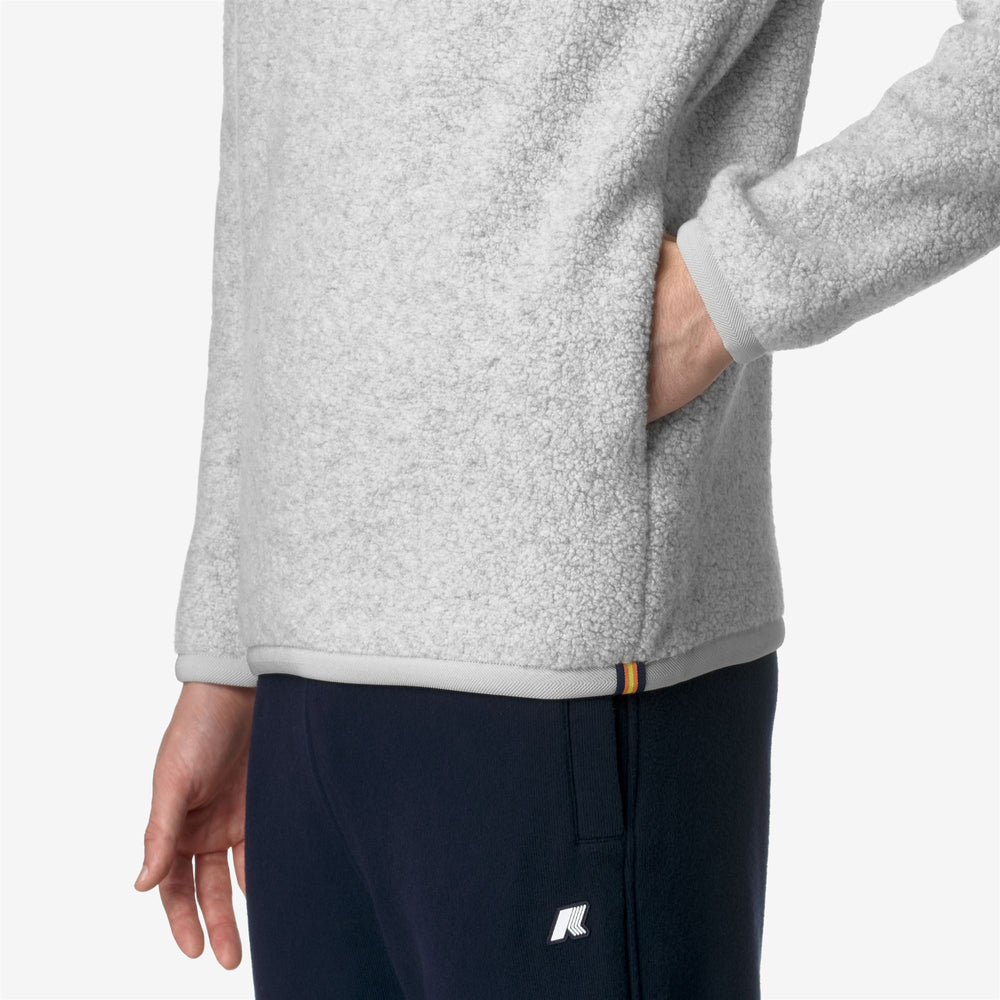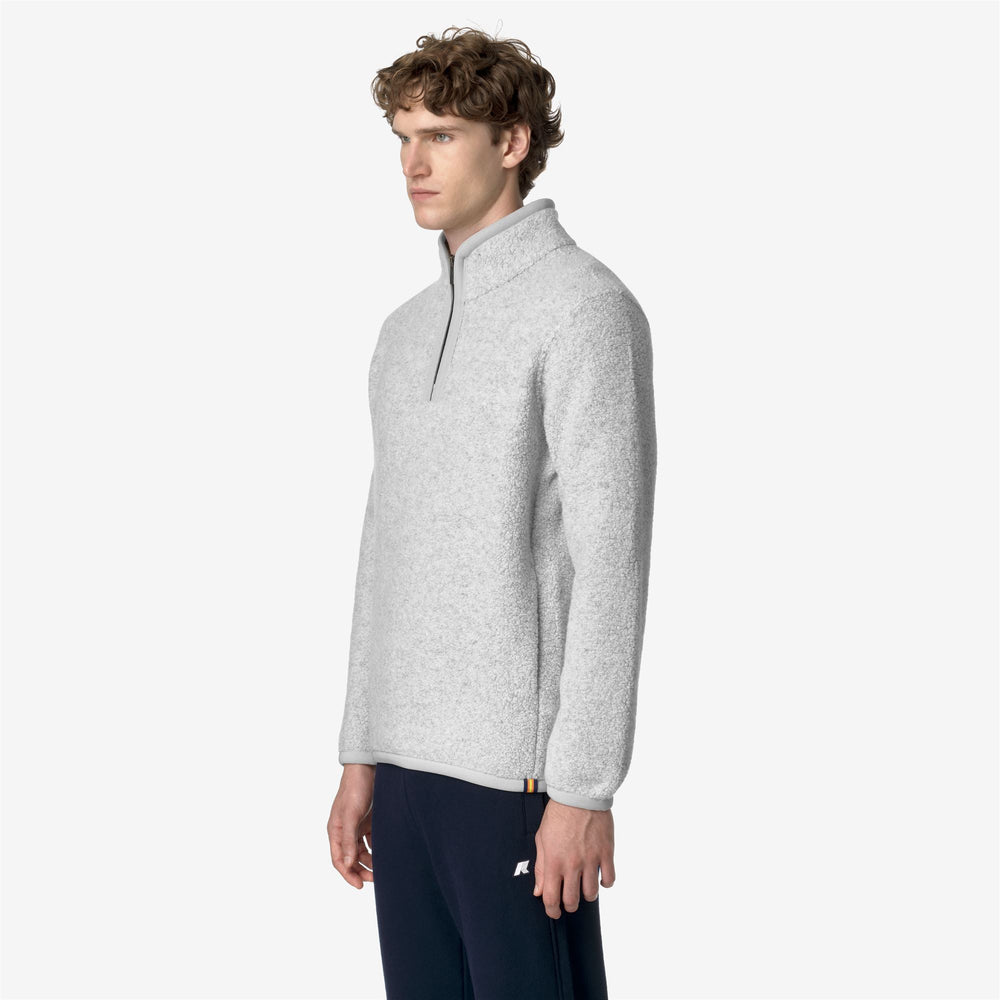 Ern is a men's sweater with a soft and cozy look which is ideal for leisure occasions, made from a blend of recycled wool teddy fabric. This essential style has a regular fit with elastic cuffs, high collar with half-zip closure, and the iconic K-Way tape detail on the side.