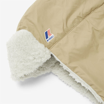 Unisex hat in padded, water-repellent, breathable, wind-proof Ripstop nylon, lined in eco-fur on the visor and earflaps. Adjusted with a buckle under the chin. Printed K-Way logo. QR label inside.