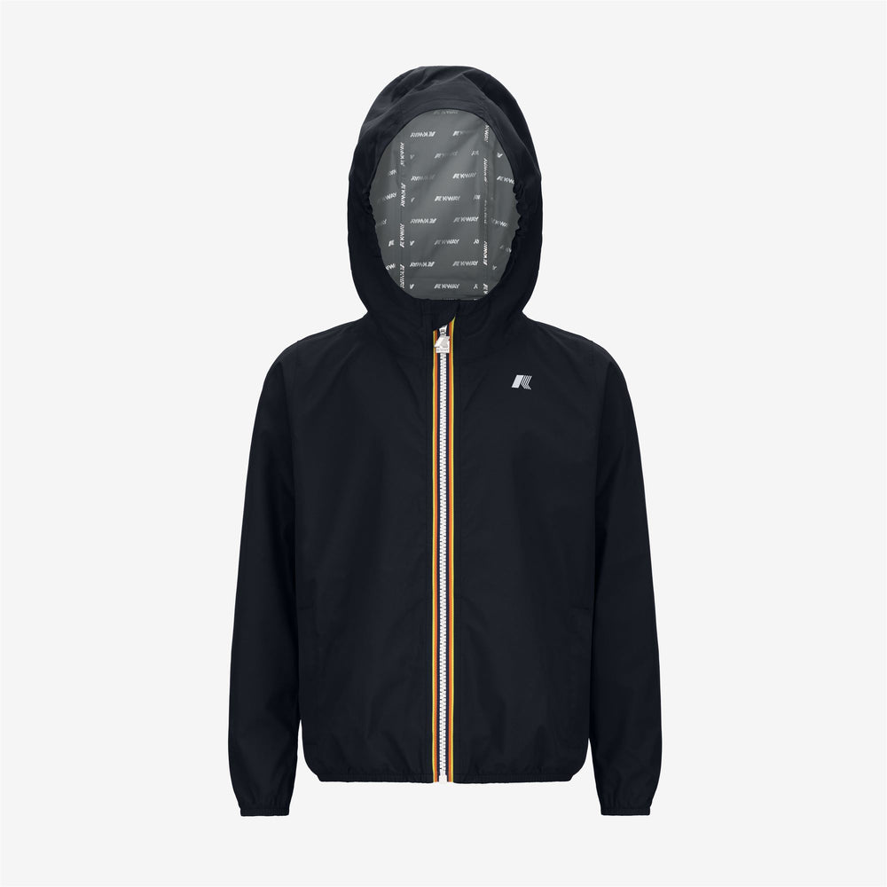 Jack is a kids’ short slim fit jacket, perfect for transitional seasons. It's crafted from stretch technical fabric that allows for unrestricted movement while providing rain and wind protection, with water resistance up to 10000 mm. The interior is lined with an insulating membrane with all-over silver-tone K-Way lettering print. Functional details, such as zipped pockets, an adjustable hood, and elasticated cuffs and hem ensure an easy, comfortable fit.