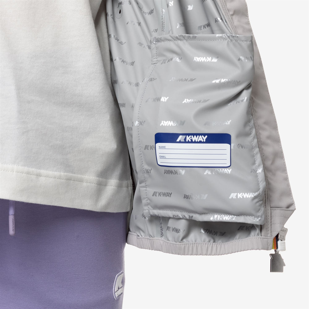 Lily is a girls’ short slim fit jacket, perfect for transitional seasons. It's crafted from stretch technical fabric that allows for unrestricted movement while providing rain and wind protection, with water resistance up to 10000 mm. The interior is lined with an insulating membrane with all-over silver-tone K-Way lettering print. Functional details, such as zipped pockets, an adjustable hood, and elasticated cuffs and hem ensure an easy, comfortable fit.