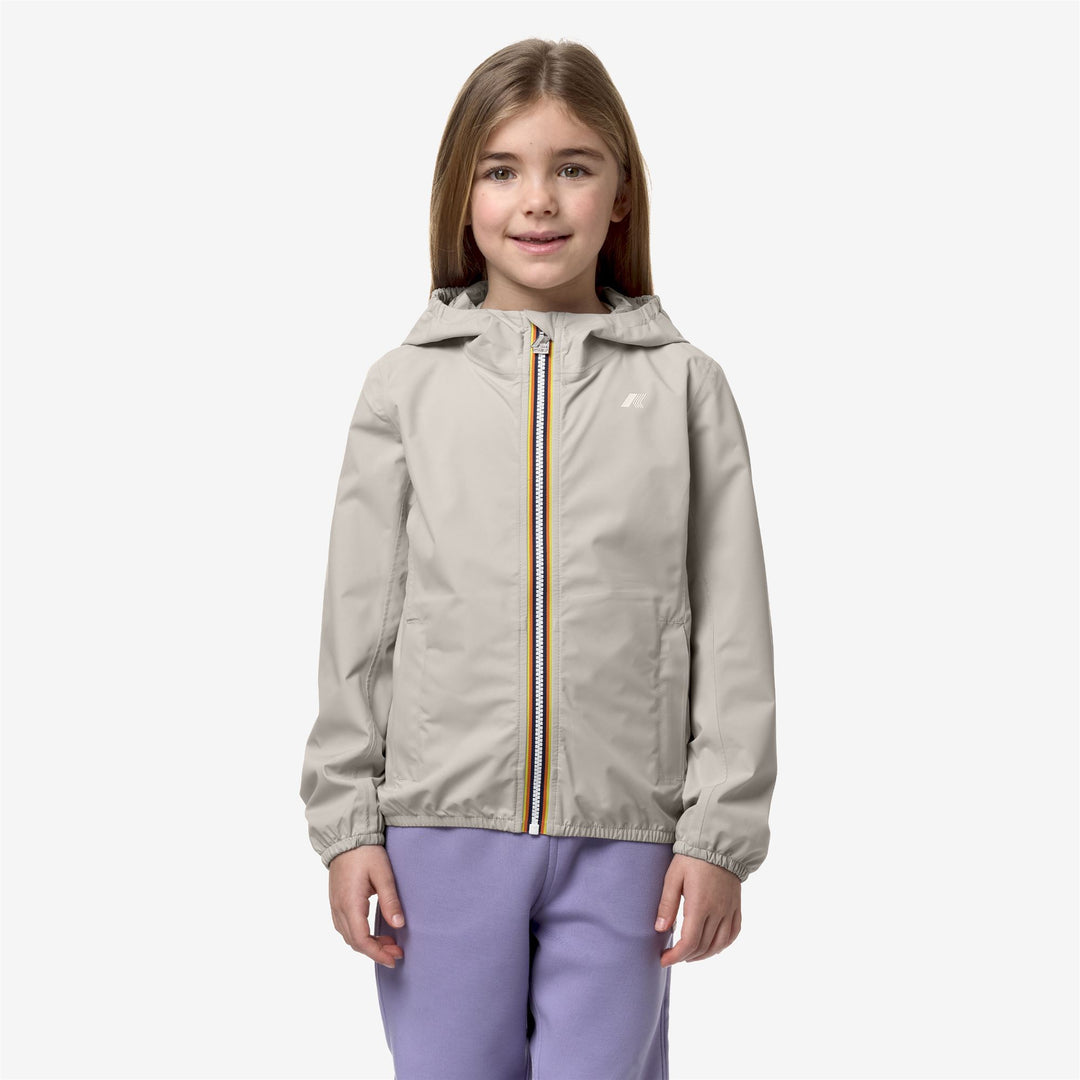 Beige Grey Girl's Slim Fit Waterproof Jacket with Adjustable Hood main