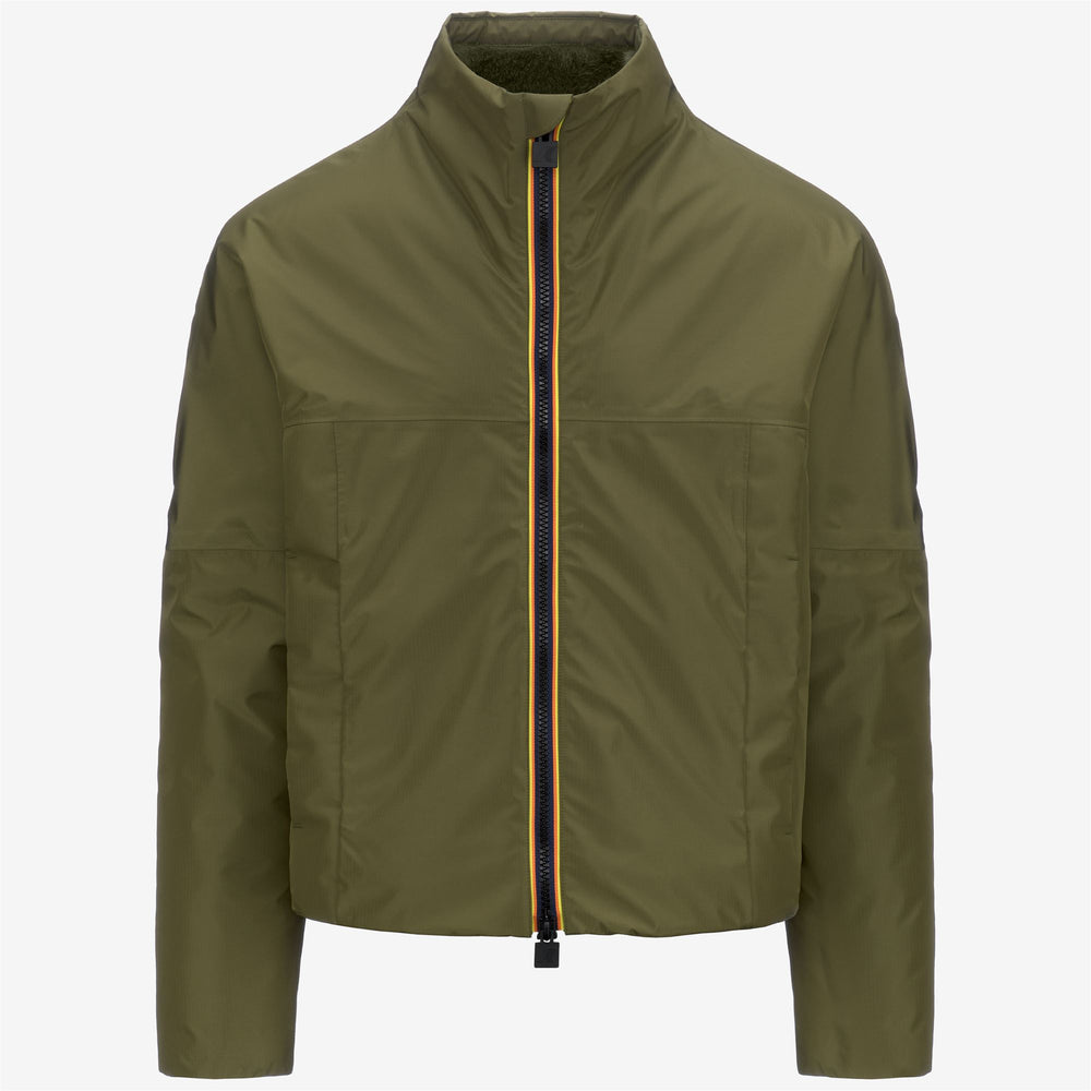 Clauder is a men's short jacket that boasts a super-soft faux fur interior. This item features a functional and contemporary construction: a 3-layer recycled polyester shell with an inner membrane and a soft jersey lining with heat-taped seams for enhanced comfort and protection. The jacket stands out for its regular cut, the soft eco faux fur lining, the full zip closure in the iconic colours of the K-Way tape, and the side pockets.