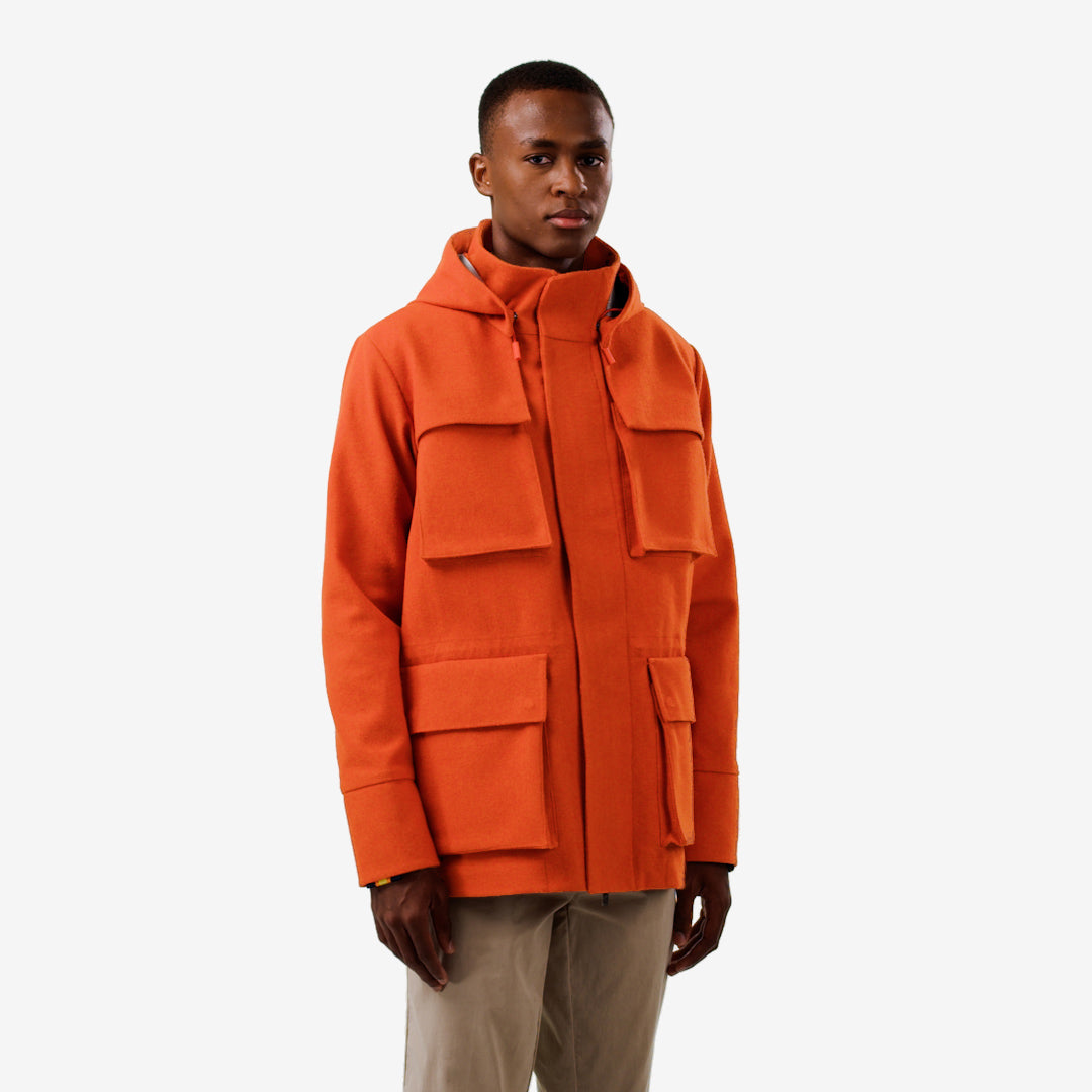 Melange Orange Men's Waterproof Field Jacket with Adjustable Hood