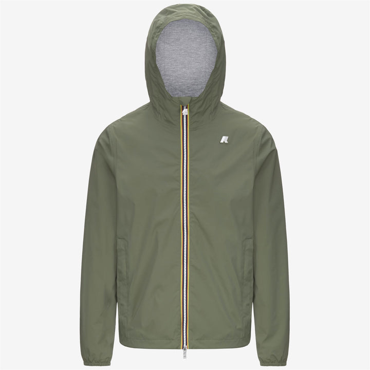 Jack is a men's slim-fit jacket, made from weather-resistant stretch nylon with soft grey melange cotton jersey lining on the front and back only, which provides superior comfort, excellent protection and a comfortable feel on the skin. The interior is finished with meticulous attention to detail: there are heat-taped seams and the iconic multicoloured K-Way tape at the waist for a distinctive signature touch.