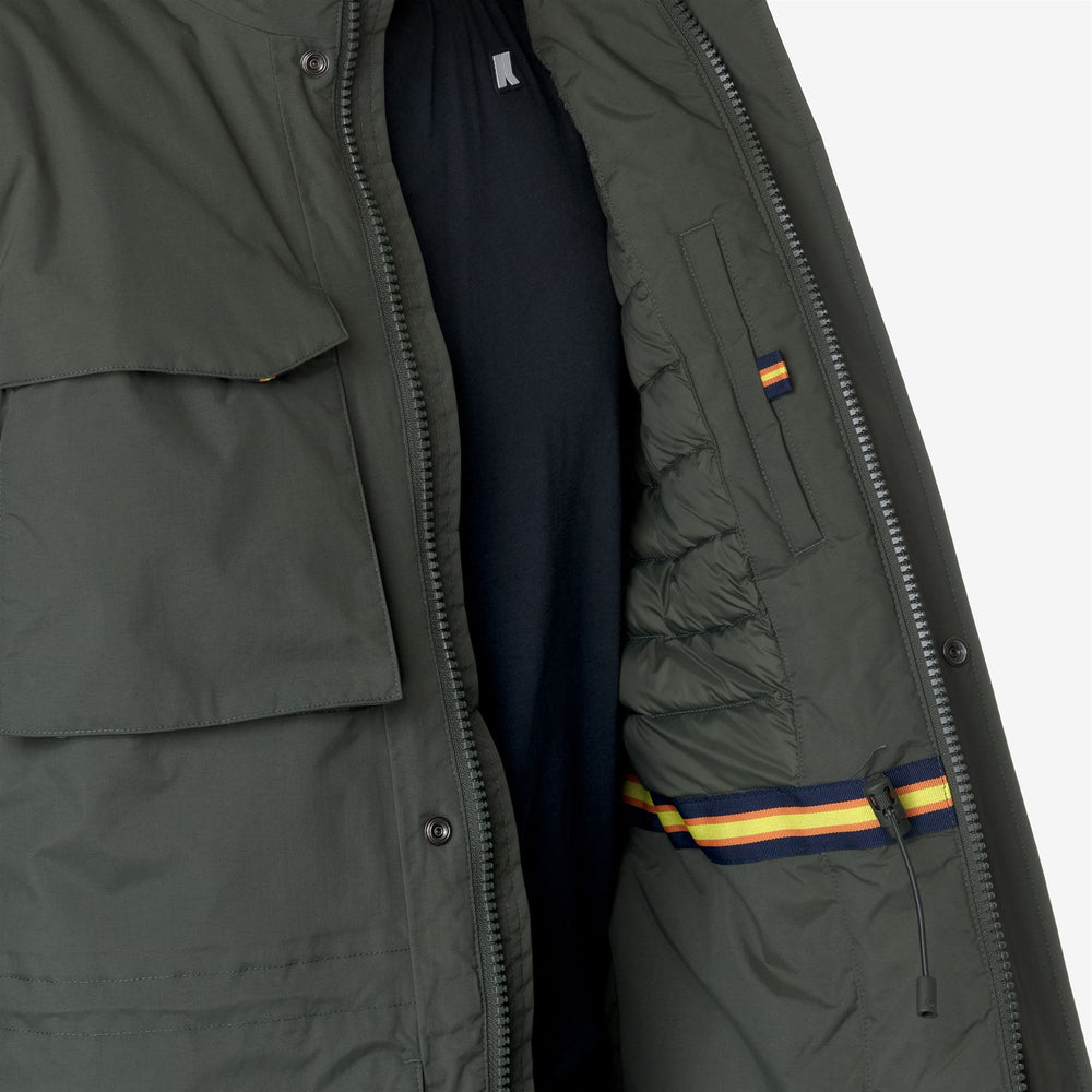 The Manphy men’s mid-length jacket provides optimal comfort with a touch of elegance. Its crisp nylon ottoman construction is sustainably insulated with mixed down and polyester padding and recycled nylon lining. Enhanced with an adjustable drawstring waist and a packable hood inside the high neck for unexpected showers.