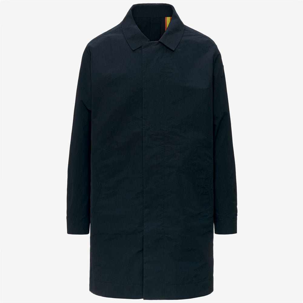 Poirol is a men’s long jacket designed for milder weather. Made from cotton-blend fabric with a natural texture and light water-repellent finish, it offers a structured look with functional features like a high collar, zip fastening with cover flap, and pockets.