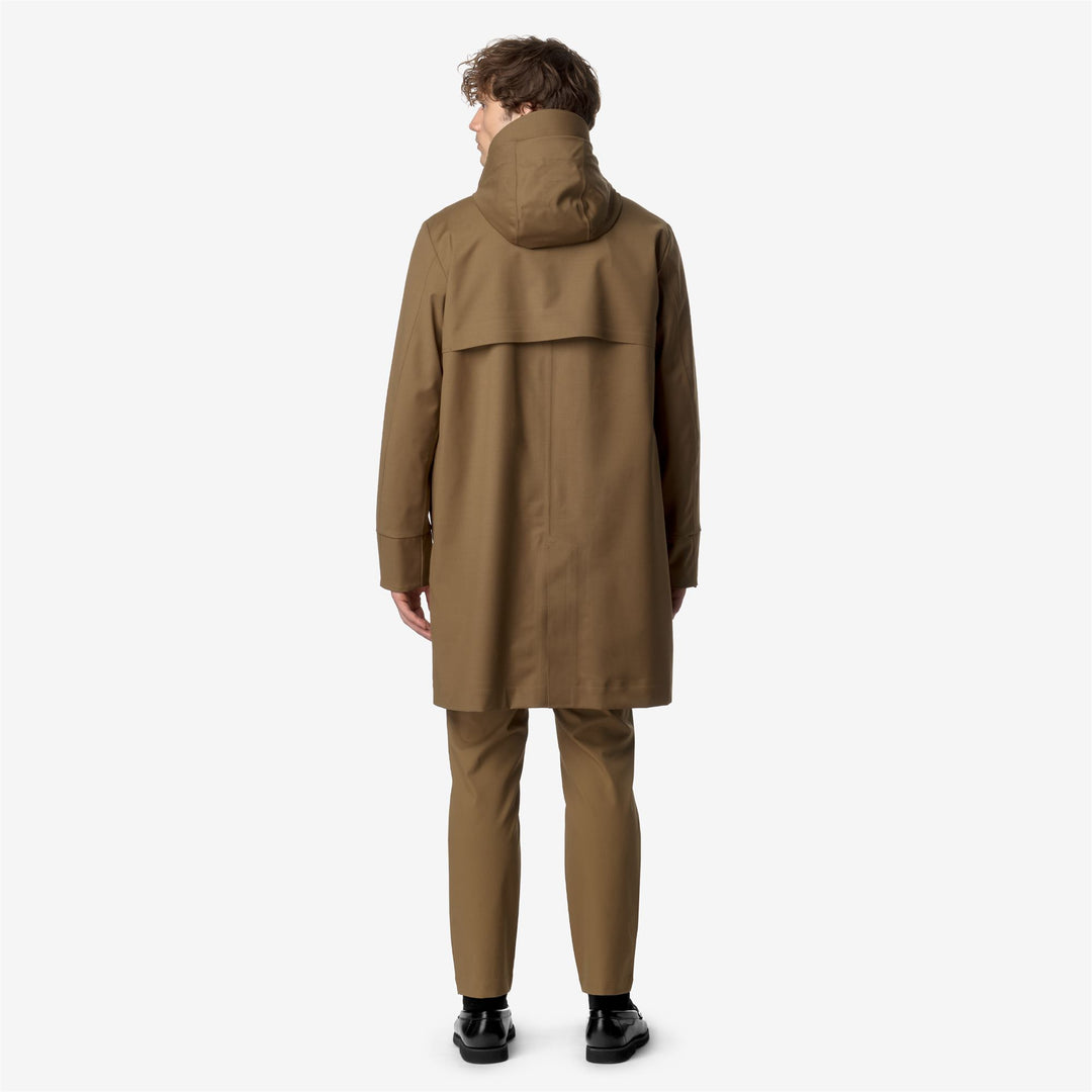 Poirol is a men’s three-quarter length jacket which is ideal for autumn, reinterpreting the classic trench coat with a city-lifestyle twist. The sleek silhouette of this jacket features an outer shell made from water-repellent technical wool, an internal membrane, and a soft jersey lining with heat-taped seams. It stands out for its clean line, with concealed zip closure, tone-on-tone button and no logos on the front. The style includes a detachable and adjustable hood, large pockets with flaps and concealed buttons, and the detail of the K-Way tape on the cuff.