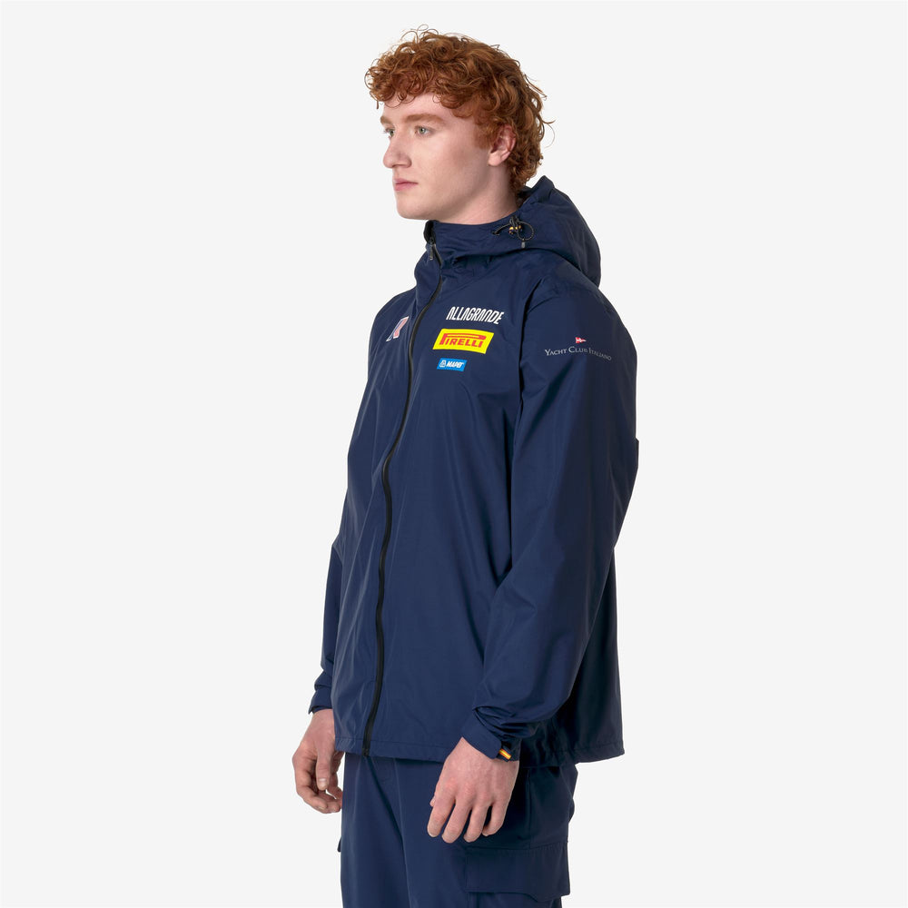 Charmel is a unisex jacket designed to ensure maximum comfort and excellent functionality while traveling. This jacket celebrates the sponsorship of Allagrande Pirelli, a Class 40 yacht skippered by Ambrogio Beccaria. Made from super lightweight three-layer ripstop fabric, Charmel is waterproof, windproof, breathable, and wrinkle-resistant, embodying the true K-Way spirit: it can be folded and stored in one of its side pockets, occupying minimal space in a bag or suitcase. The model features a zip closure, an adjustable wrap-around hood, ventilation cuts, and reflective inserts for safe use even in low-light conditions. It bears the logos of K-Way, Allagrande Pirelli, and Mapei printed on it.