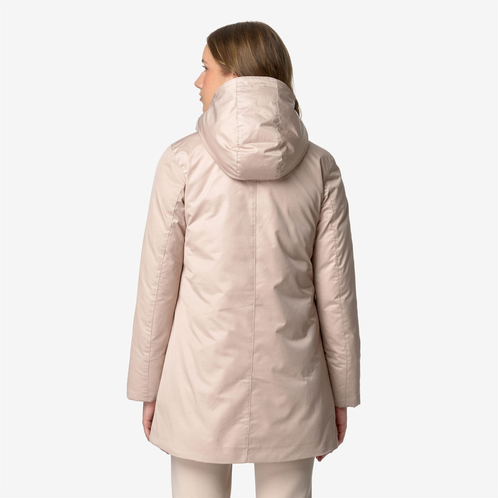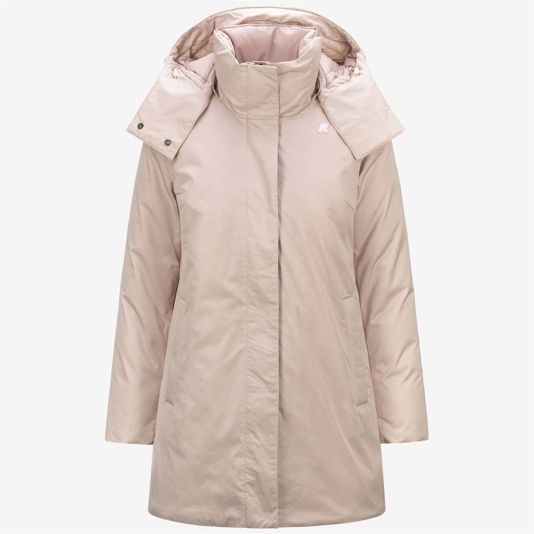 Kalua is a women’s three quarter-length jacket designed for the coldest weather. This style combines innovation and technology, given the contrast between the satin, velvety look of the external water-resistant fabric and the functional, rainproof and windproof design. This outerwear piece features a goose down padding, that provides a high warmth grade, and curated detailing such as a detachable and adjustable hood, side pockets, and cuffs with inner gaiters for superior hand protection.