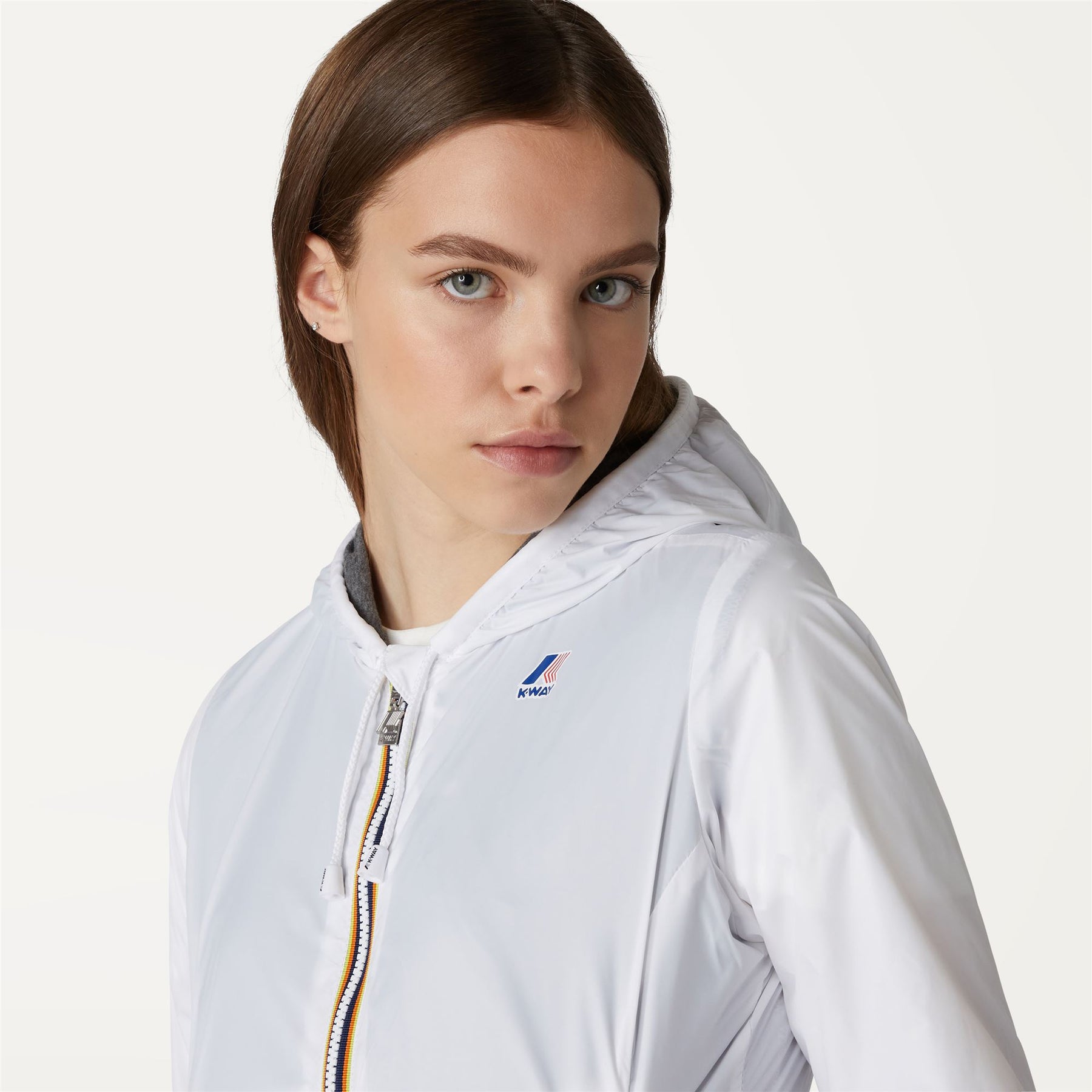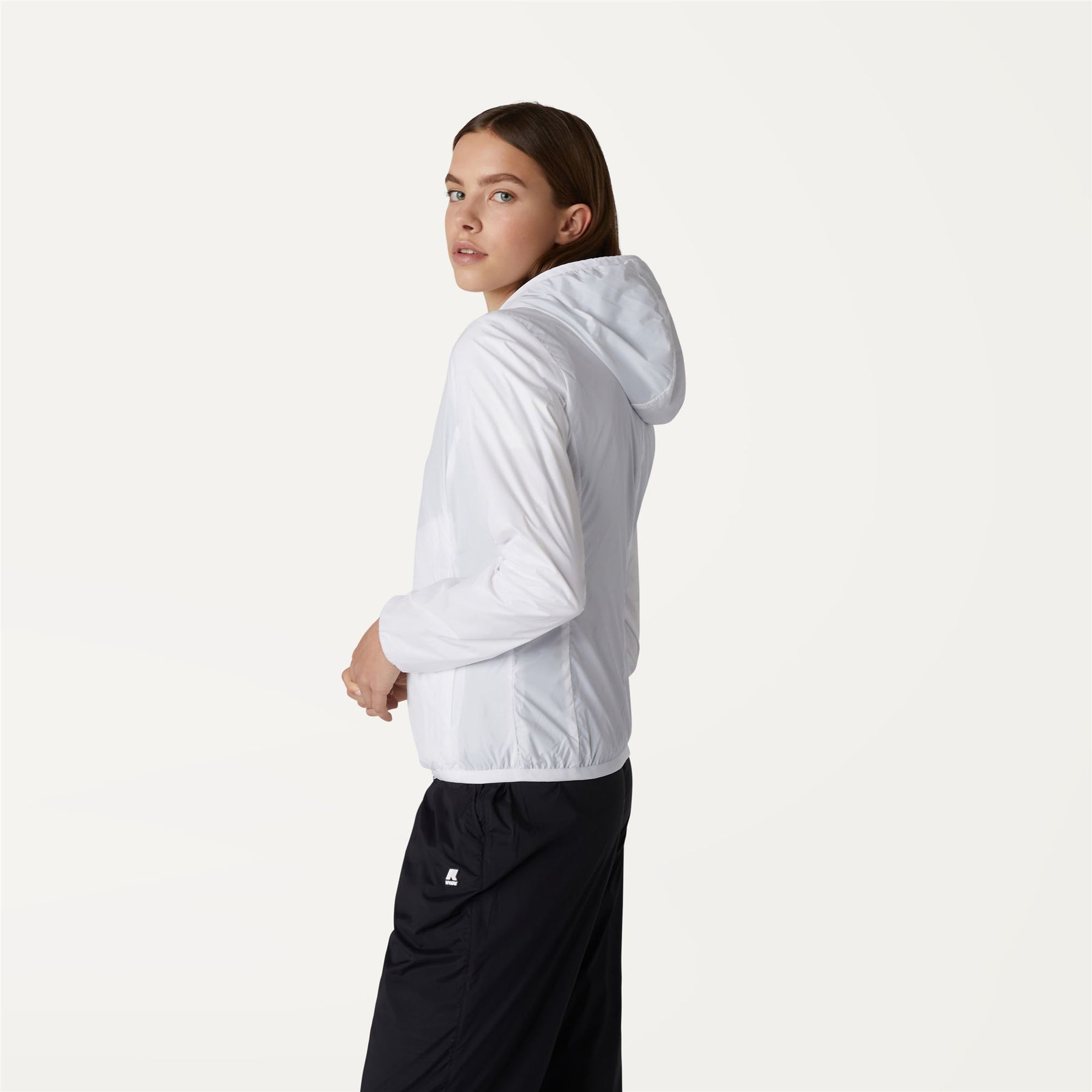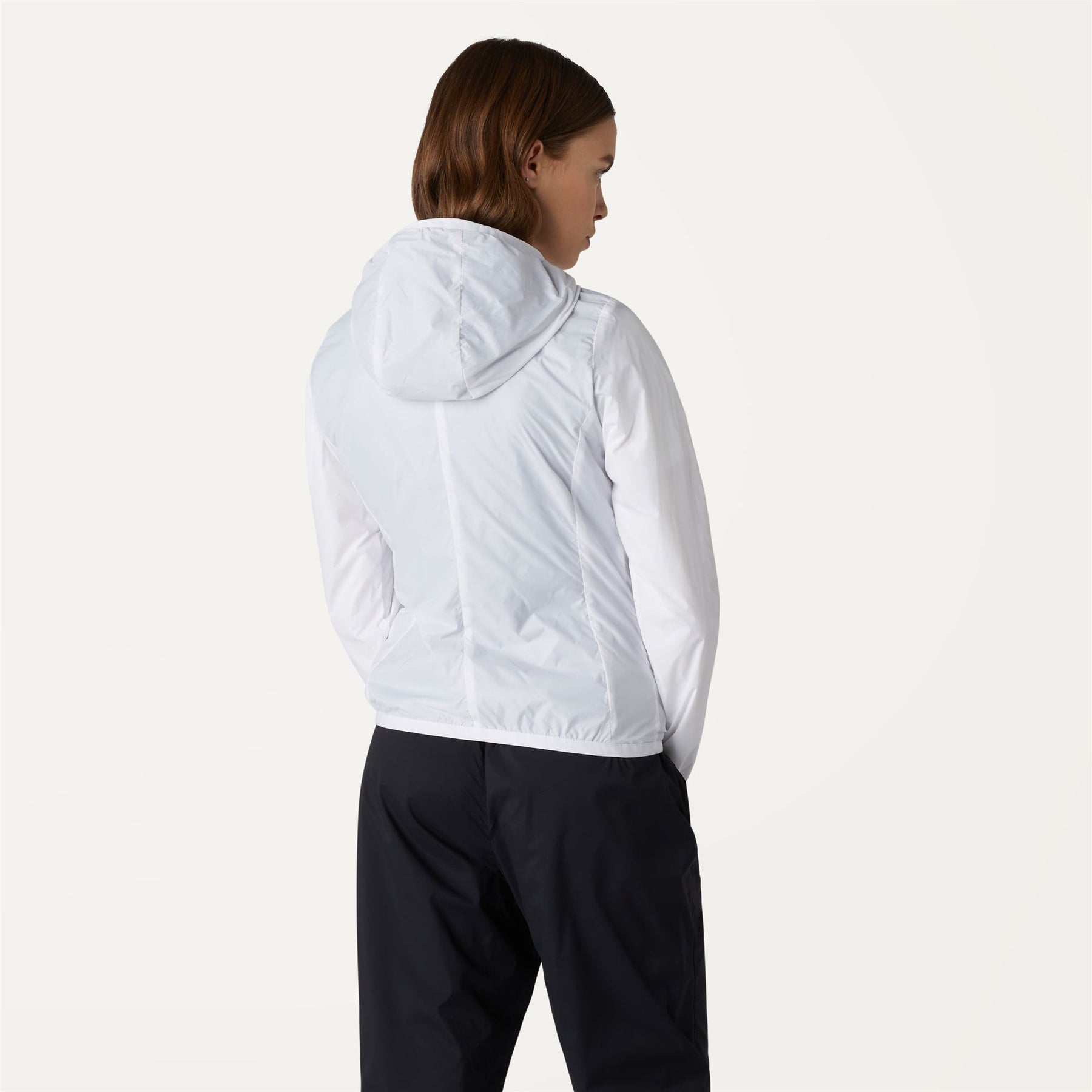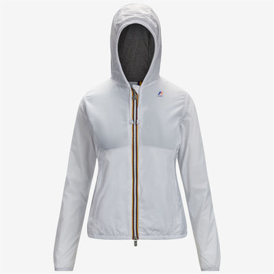 Woman packable jacket in light nylon with jersey lining, comfortable, water repellent, windbreaker and breathable. Slim fit. Opening with Vislon zip. 2 front pockets. Adjustable fixed hood with anti-drops binding. K-Way logo and inner labels printed.