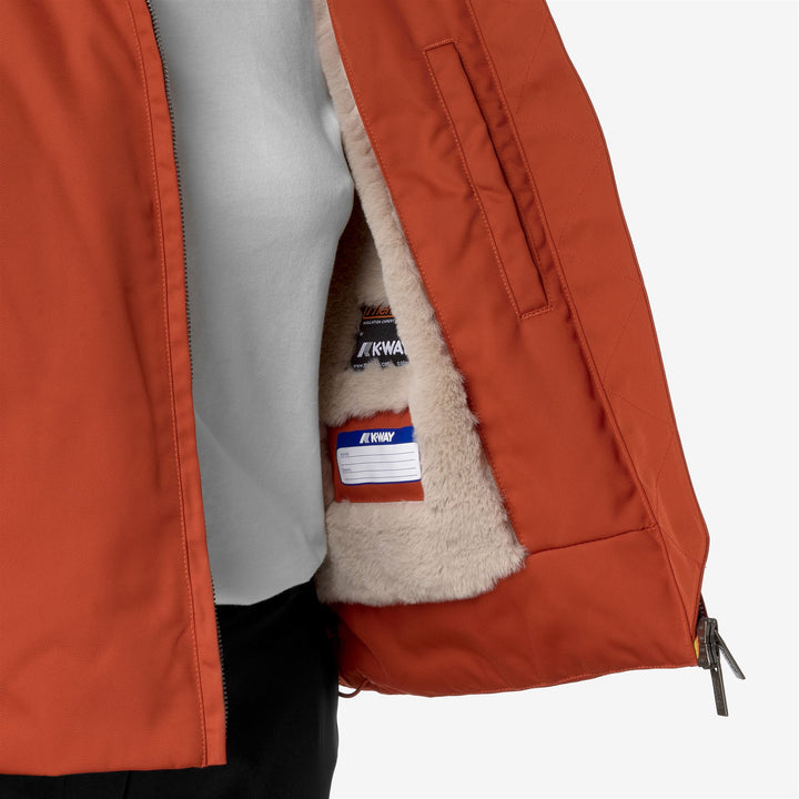 Olgais a women’s short jacket with a distinctive contemporary city appeal which is perfect for daily life. This style features a water-resistant outer shell made from technical twill fabric and provides a medium warmth grade, due to the warm and cozy faux-fur lining. The jacket features zip closure, an adjustable wrap-around hood, 2 side pockets, and an adjustable drawstring waist. The iconic K-Way tape detail adds a refined touch to the cuff.