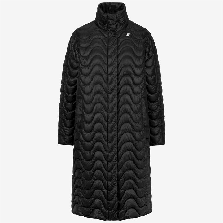 Sonja is an extra-long jacket for women with an "A" line silhouette, with a comfortable fit and contemporary city-ready design. The high collar and full zip closure with protective flap give a clean and sleek look to this outerwear piece. Made from recycled water-resistant and windproof nylon, it features a quilted wave texture for a distinctive graphic touch and a polyester padding which provides a medium warmth grade. The innovative padding of this outerwear piece is made from Thermore®, a highly insulating fiber obtained from recycled plastic.