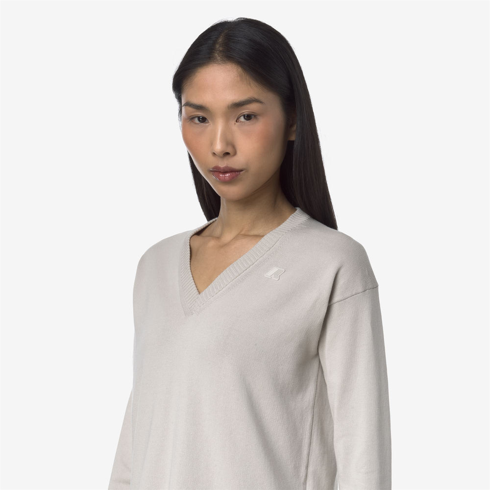 Beige Grey Women's Cotton V-Neck Crop Sweater with Ribbed Trims main