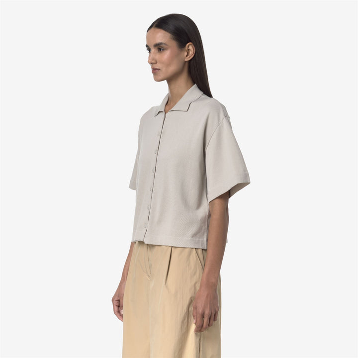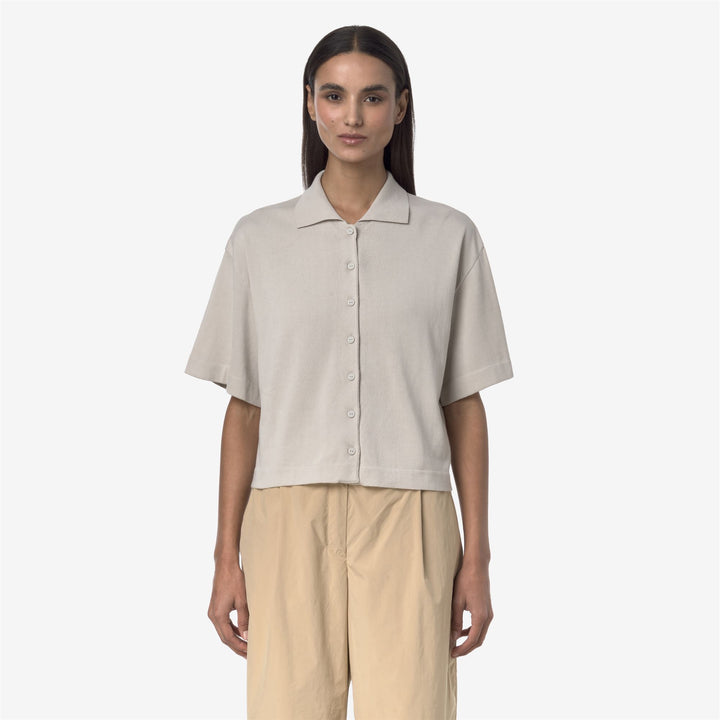 Carry is a women's kimono-sleeved knitted shirt with a classic, regular-fit silhouette, made from pure Egyptian cotton with a soft, smooth, anti-pilling yarn. This lightweight knitwear piece features a polo collar, front button fastening and three quarter-length sleeves, modernised by a slightly cropped, feminine cut.