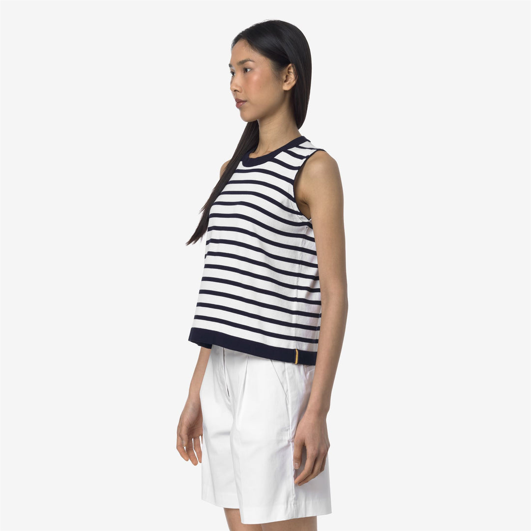 Geri is a women's vest with a classic, regular-fit silhouette, made from pure Egyptian cotton with a soft, smooth, anti-pilling yarn. This lightweight vest features a timeless crew-neck design with a striped pattern, modernised by a slightly cropped, feminine cut.