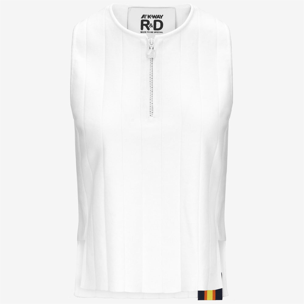 Jaelle is a sleeveless women's crewneck top with classic lines and a regular fit, made with a yarn of pure Egyptian cotton that has a soft and smooth ribbed texture, limiting the occurrence of pilling and ensuring excellent longevity over time. The garment is characterized by a minimalist design with a tonal zip closure and a white slider.