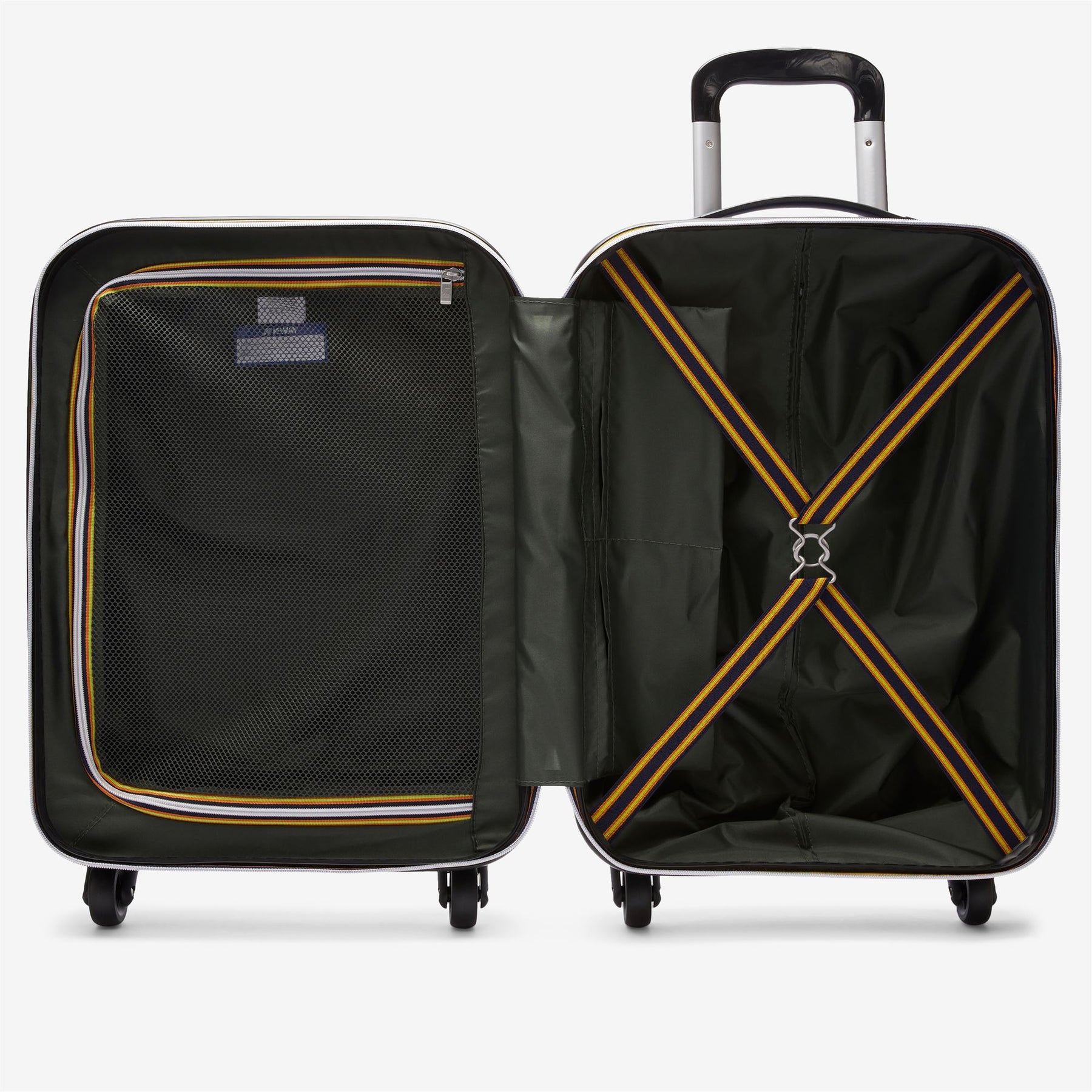 Inner compartment with striped elastic tape and metal hooks