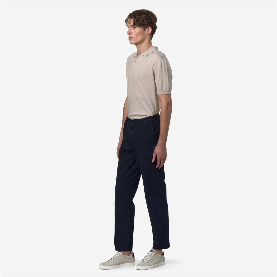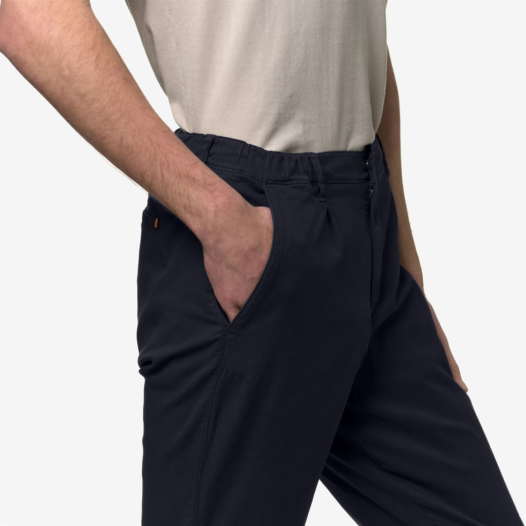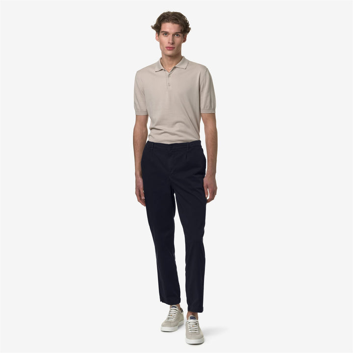 Bran is a men's gabardine trouser with a versatile look and stretch fit. Comfortable and essential for the warmer seasons, these pants feature a straight-leg chino design with side pockets and an elasticated waist with a zip and button fastening.