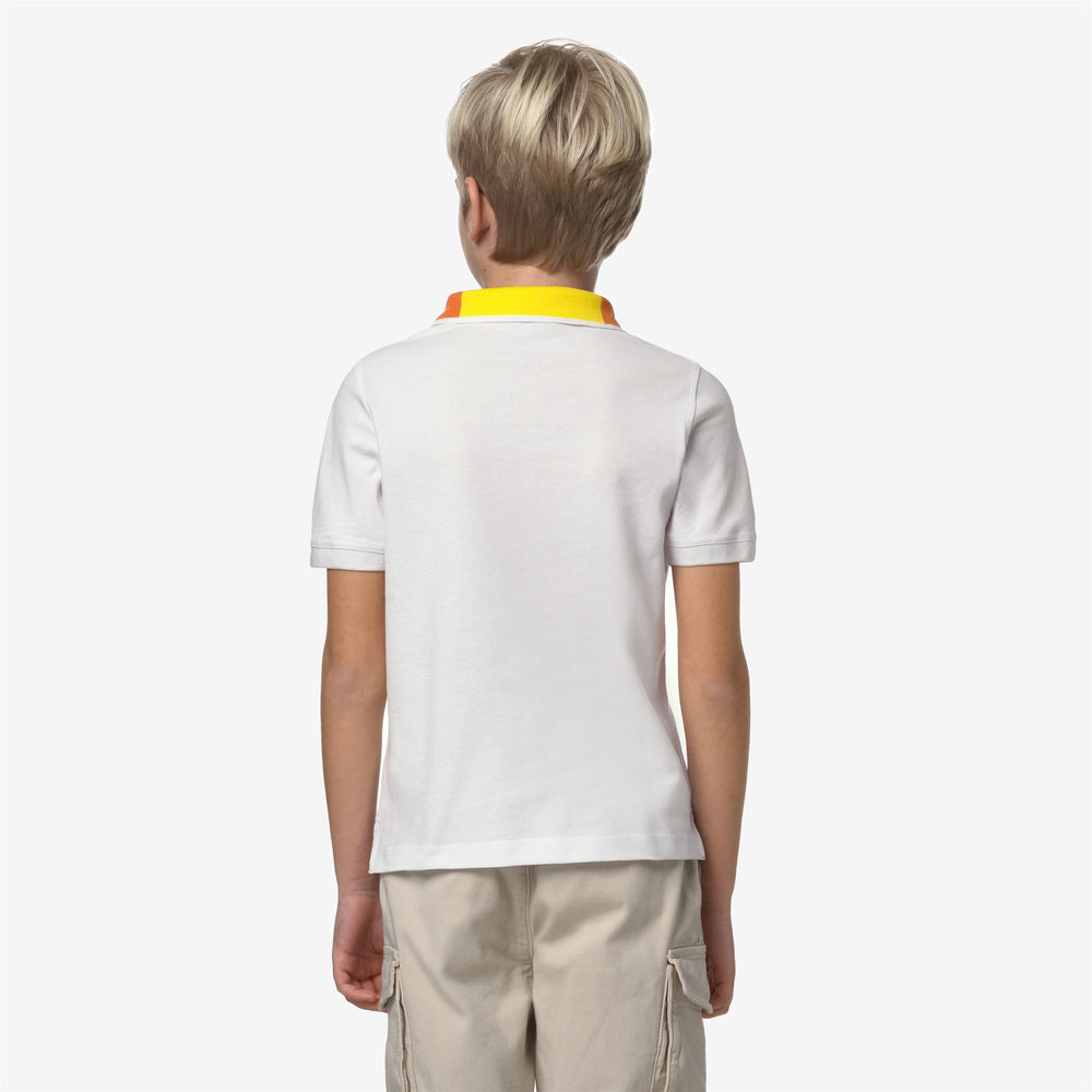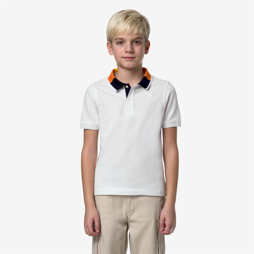 Vin is a boys’ polo t-shirt made from soft and flexible stretch cotton pique’. Enhanced with branded with K-Way's signature tape color blocks on the back of the ribbed collar and a white silicone logo patch on the front, it features a practical button flap, ribbed inserts and side vents to facilitate optimal freedom of movement.