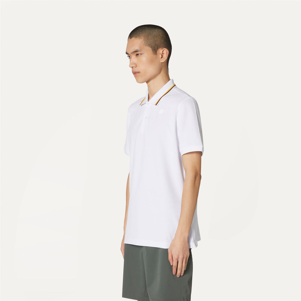 The Jude men's polo shirt is crafted from stretch cotton piqué: ultra-soft and extremely flexible. The collar is detailed with a striped trim inspired by K-Way's iconic tape, whilst side slits provide optimal freedom of movement.