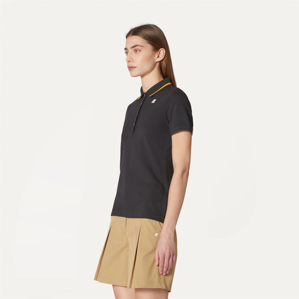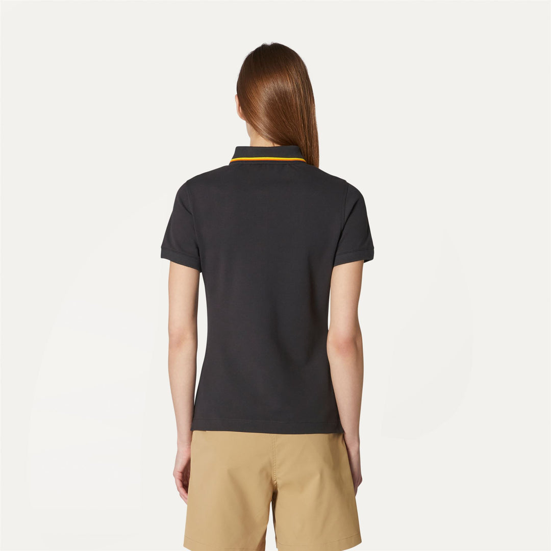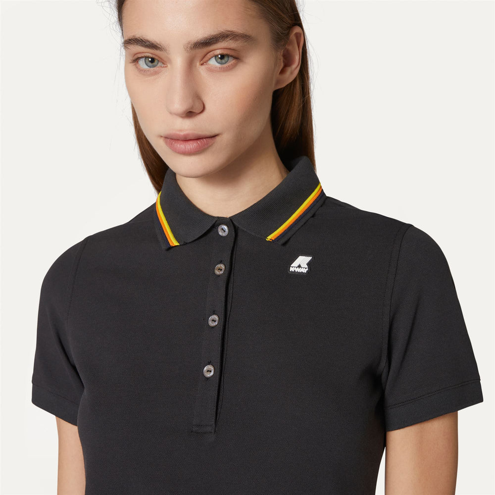 The Jeannine women's polo shirt is crafted from ultra-flexible soft stretch cotton piqué. The collar is detailed with a striped trim inspired by K-Way's iconic tape, whilst side slits provide optimal freedom of movement.