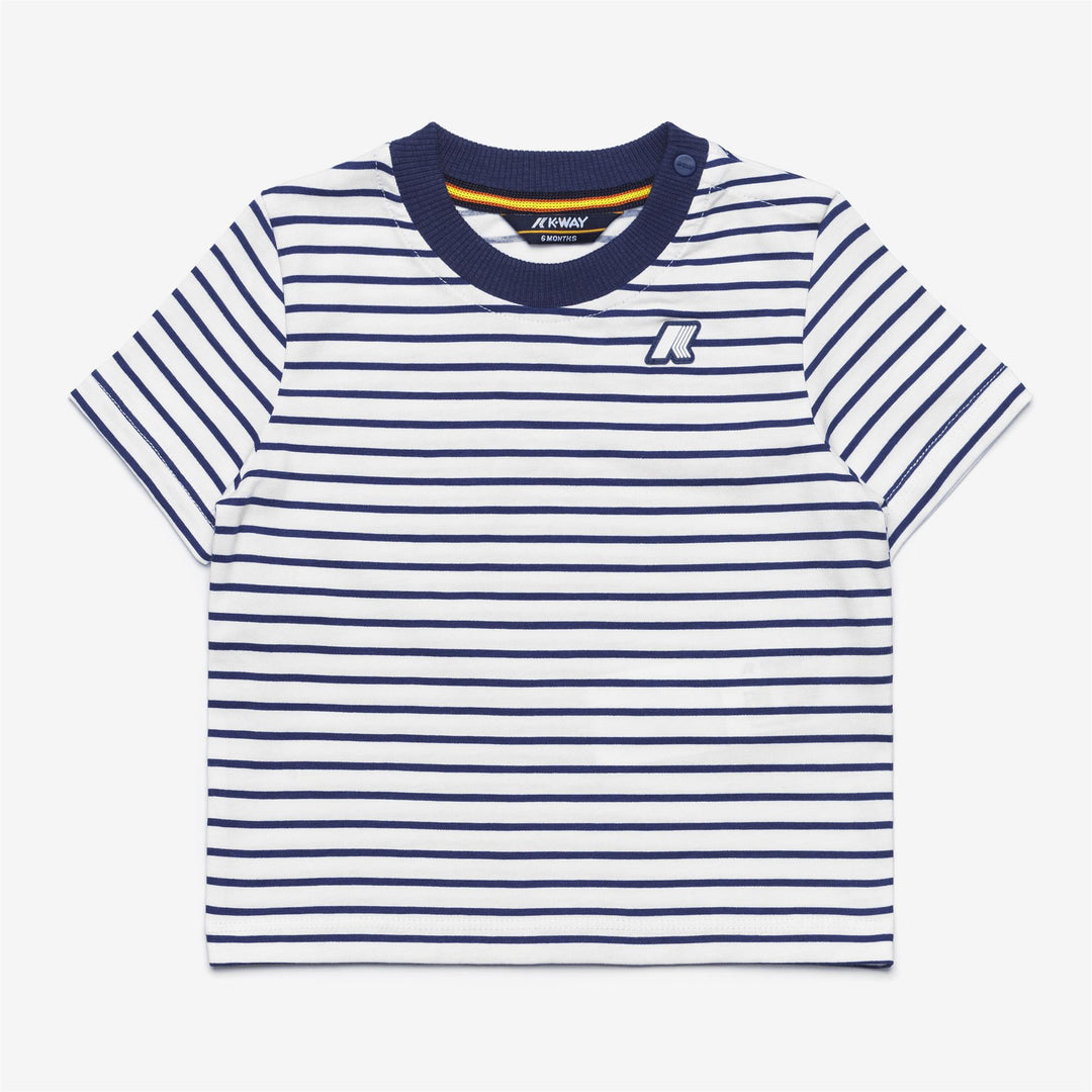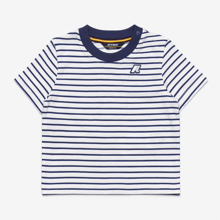 This newborn baby set, ideal for welcoming summer and going on holiday in a K-Way style, consists of a crew-neck striped t-shirt with a K-Way button fastening on the collar and a pair of plain shorts made from extra-soft cotton jersey with an elasticated waistband. The garments boast in a delicate, summery marinière style.