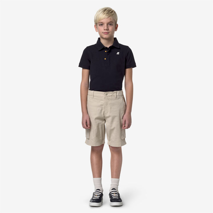 Davon is a pair of boys’ stretch gabardine Bermuda shorts, flauting a versatile look. This style is a comfortable must-wear for the warmer season and features a cargo design with utilitarian side flap pockets, elasticated waist and a zipper closure with one button.