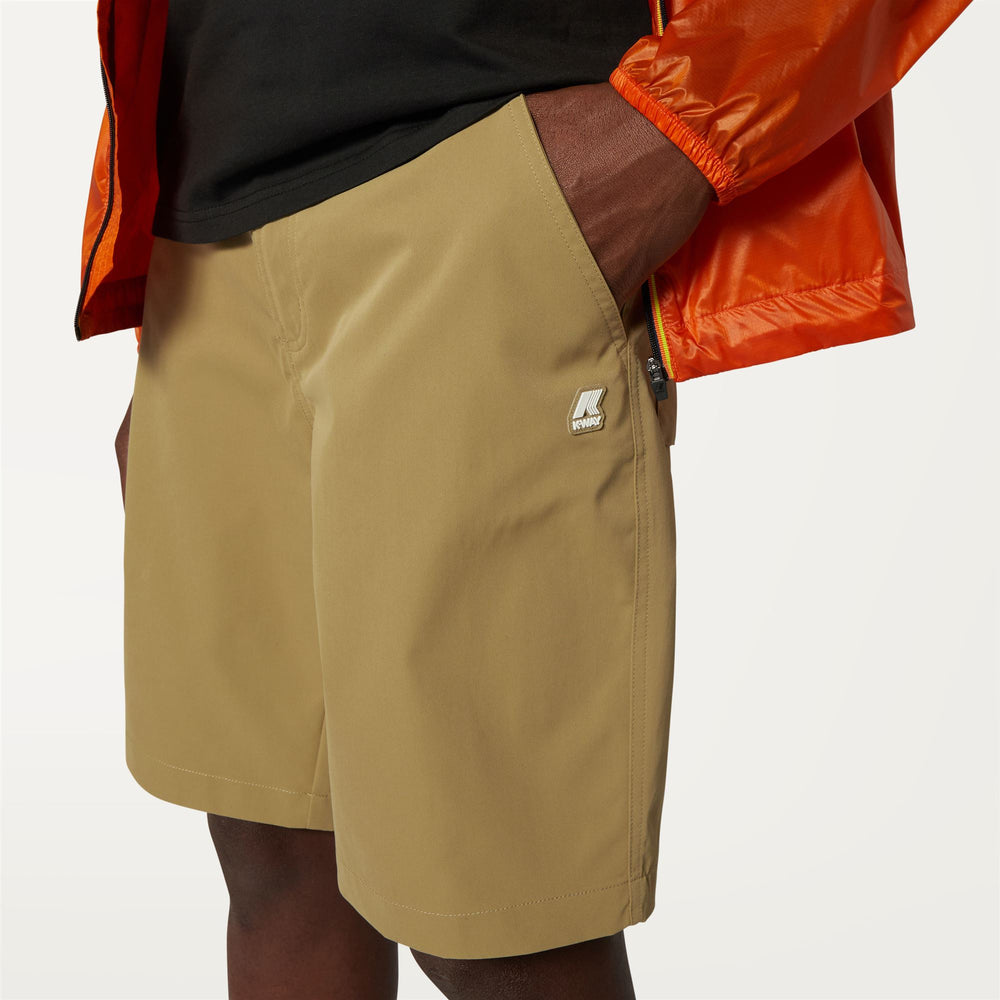 The Pave men’s Bermuda shorts reinterpret K-Way’s dynamic style with an urban edge guaranteed to take your everyday wardrobe to the next level. Crafted from nylon twill, they flaunt maxi pockets and a striped belt loop on the back that recalls the colours of our iconic tape.