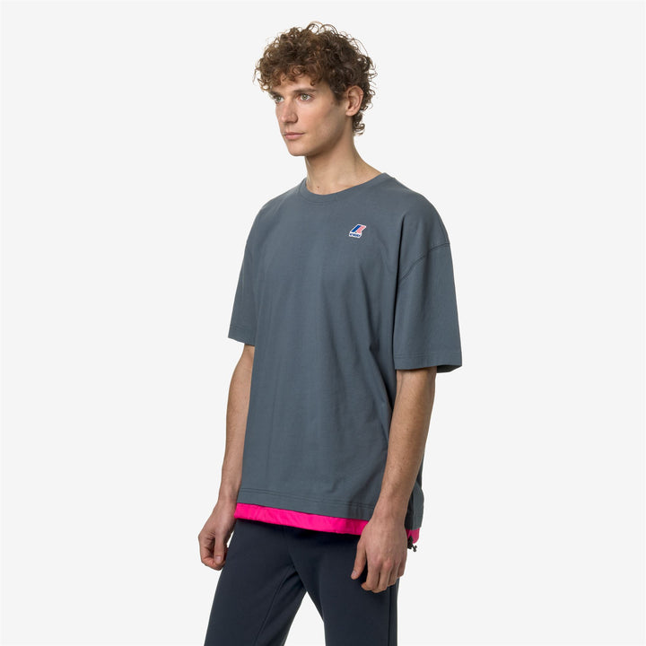 Grey Blue Unisex Casual Cotton T-Shirt with Adjustable Waist Hem main