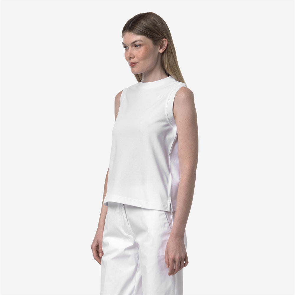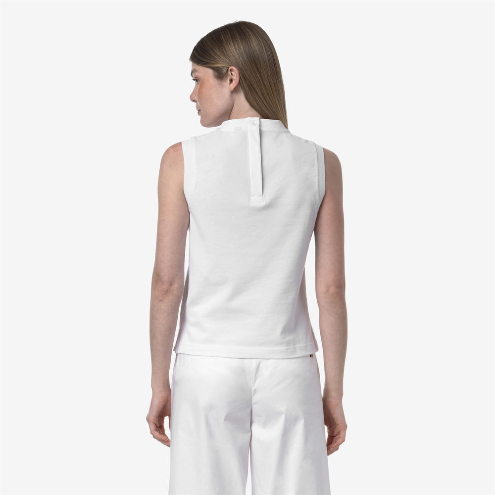Mosa is a women's sleeveless top made from stretch piqué cotton, boasting a sporty and versatile appeal that is perfect for leisure time and travel. This sleeveless crew-neck T-shirt features ribbed collar and armhole trims, and nacre button fastening on the back.